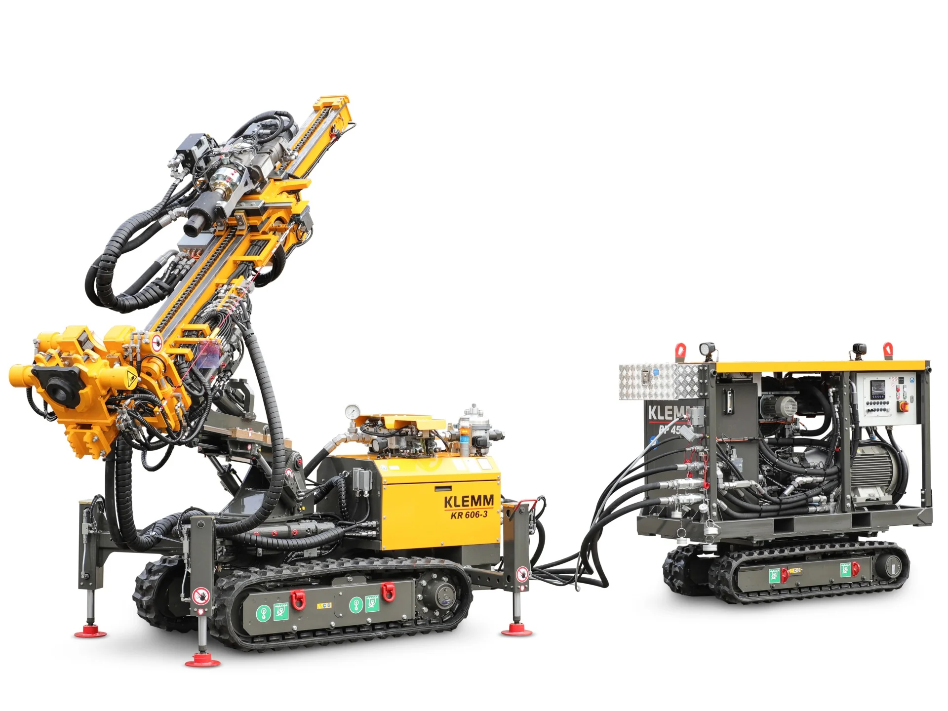 The drilling rig with drill mast kinematics for confined spaces. With a machine width which allows it to be carried through doors and a selection of diesel or electric Power Packs, which can be positioned independently of the drilling rig.
