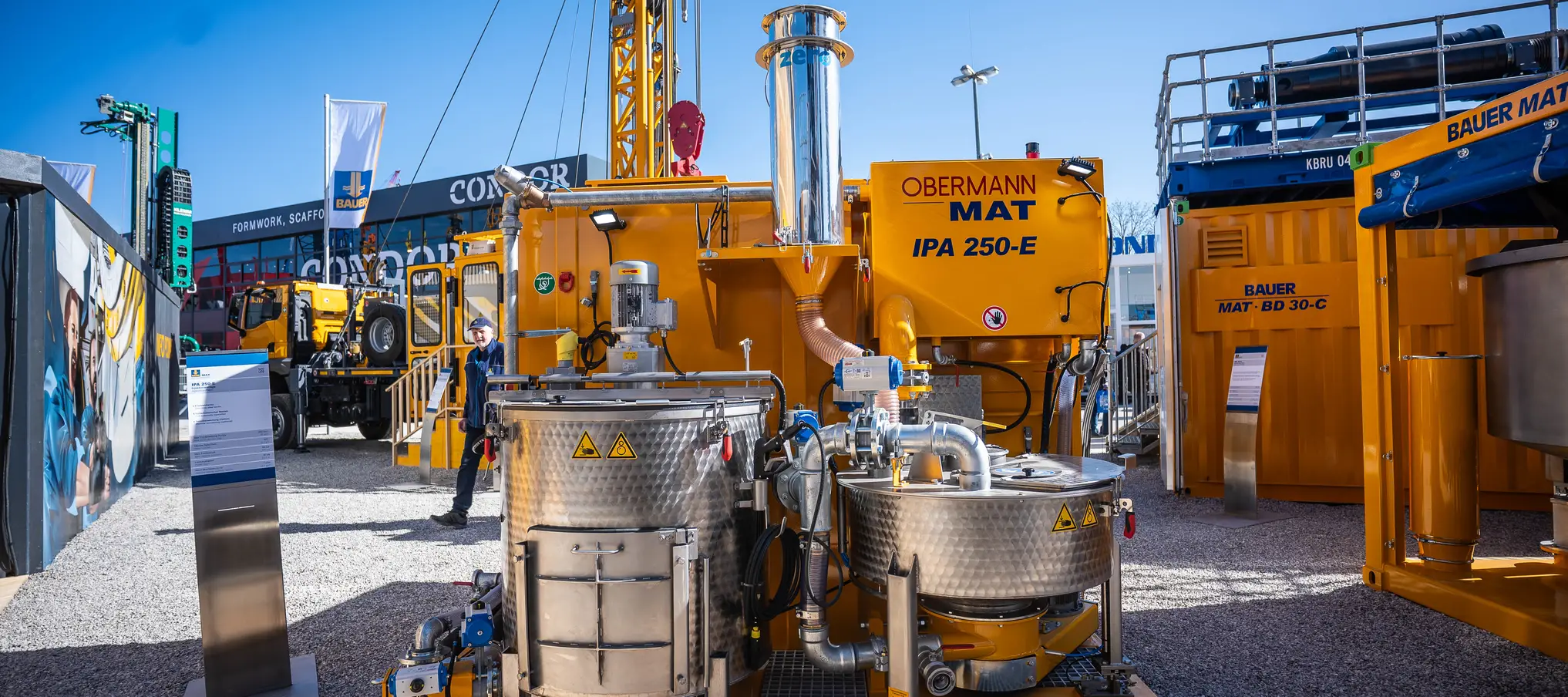 The IPA 250-E is a completely newly engineered injection plant that combines the proven MAT mixing technology with the experience gained from OBERMANN injection stations. The delivery rate has been increased by 42% from the previous 175 l/min to 250 l/min (max. delivery pressure of 80 bar) and a nominal mixing capacity of 7.0 m³/h (at W/Z 1.0).