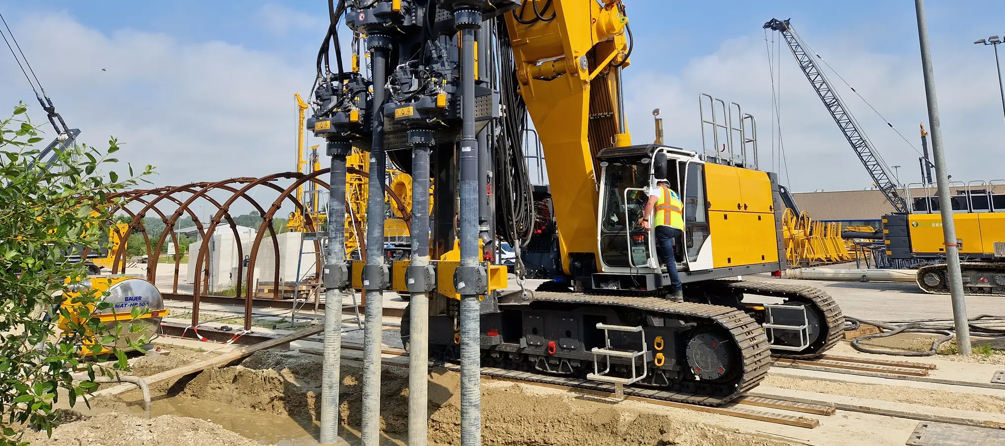 The MSM system is an economically efficient mixing method in which mixing paddles arranged parallel to one another are turned into the soil by up to four independent rotary drives. In the process, cement slurry is continuously pumped through the hollow stem. This system is used for the construction of cut-off walls.